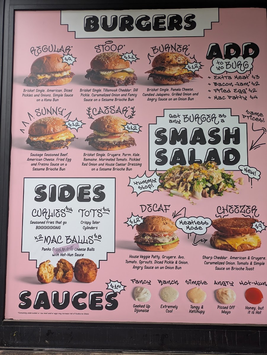 Brisket Single, Gruyere, Parmesan Flakes, Romaine and Kale, Marinated Tomato, Pickled Red Onion and House Caesar Dressing on a Sesame Brioche Bun