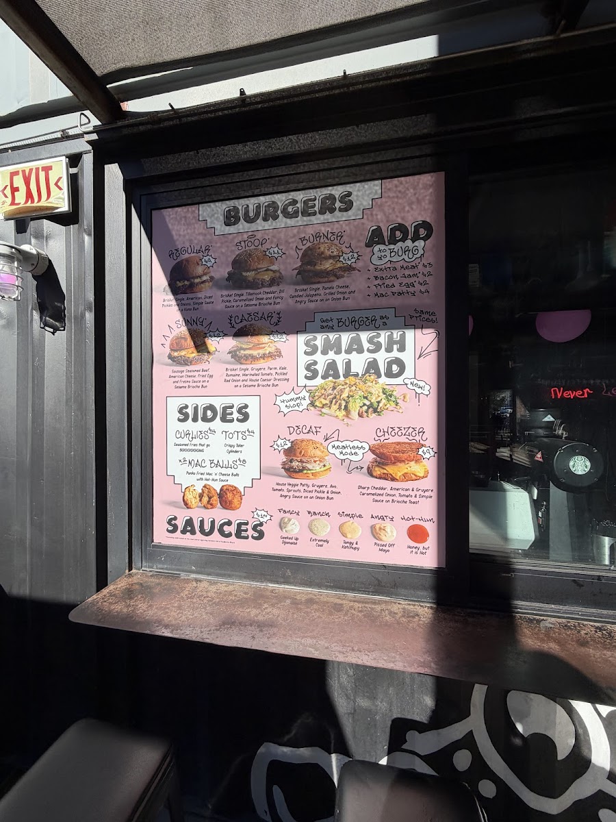Sausage-Seasoned Beef, American Cheese, Fried Egg and Fresno Sauce on a Sesame Brioche Bun